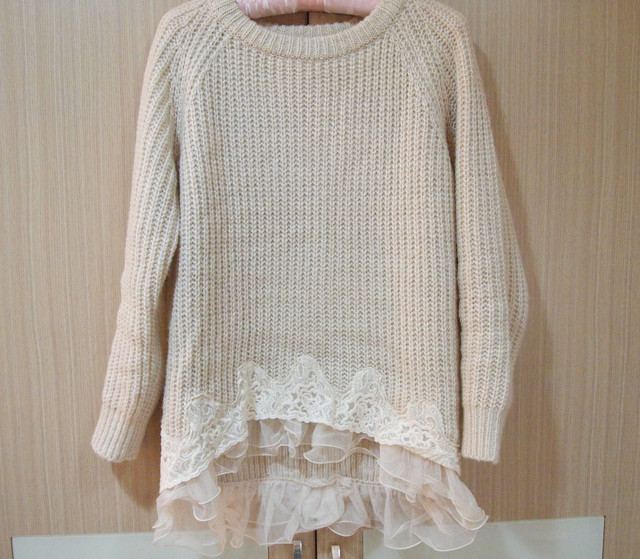 冬天穿來保暖的毛衣,一定也要選擇有蕾絲設計的才行,嘻!